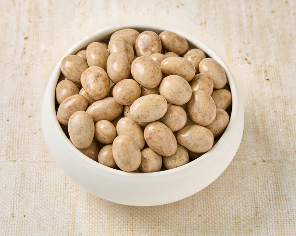 Almendras recubiertas con chocolate blanco y un toque de café, creando un equilibrio entre la suavidad del chocolate y el sabor intenso y sofisticado del café. Ideal para los amantes de la combinación de dulce y café.