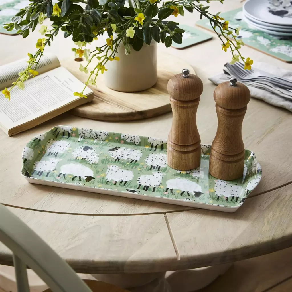 Una pintoresca escena campestre para los amantes del campo. Estas ovejas, ilustradas a mano con sus corderos recién nacidos, alegrarán cualquier cocina. Su pelaje rizado y sus expresiones faciales amigables aportan diversión, mientras que las brillantes flores del prado son el toque final perfecto, todo ello sobre un fondo de un verde cálido y tenue inspirado en los paseos primaverales por la exuberante campiña norirlandesa.