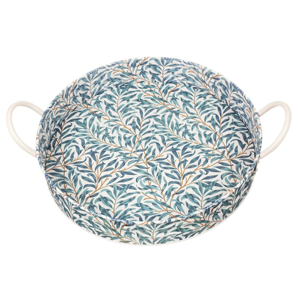 Esta bandeja, bellamente decorada, luce el diseño Willow Bough, propio del estilo distintivo de William Morris. El patrón presenta una variedad de hojas en tonos verdes suaves y verde azulado, sobre un fondo crema que realza el llamativo diseño.