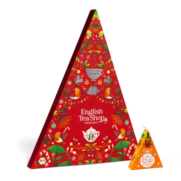 Calendario de Adviento de té especial y triangular de English Tea Shop para colocar. El calendario de Adviento de té contiene 24 tés orgánicos de alta calidad en bolsas de pirámide (+ 1 té destacado adicional para el día de Navidad). Alternativa perfecta al calendario de Adviento de chocolate y como regalo o decoración en Adviento. Descubre durante el Adviento las mezclas de té más populares, así como tés de hierbas, frutas, chai, verde y negro de English Tea Shop. Además, hemos escondido tés de temporada navideña en el variado calendario de Adviento de té. En total, se pueden degustar 24+1 tipos diferentes de té cada día de Adviento. Las bolsas de pirámide incluidas son suficientes para preparar una pequeña tetera. Así puedes disfrutar de los tés con otra persona o simplemente beber la segunda taza tú mismo. El elegante y moderno diseño del calendario de Adviento de té en mosaico crea un punto destacado navideño como decoración en la sala de estar o la cocina. Las cajas piramidales triangulares están dispuestas como un mosaico en un triángulo más grande que recuerda a la forma de un árbol de Navidad. Las cajas extraíbles también se pueden reorganizar. Así, se pueden lograr nuevos efectos gracias a la hermosa combinación de colores. Como calendario de Adviento, es un regalo estupendo para todos los amantes del té, amigos, colegas, padres e incluso niños. Casi todas las variedades de té son descafeinadas. Calendario de Adviento de belleza para el alma. Embalaje ecológico: El calendario de Adviento de té está empaquetado sin plástico y fabricado con materias primas renovables. Todos los componentes son compostables o reciclables. Las bolsas de pirámide sin plástico son 100% biodegradables.