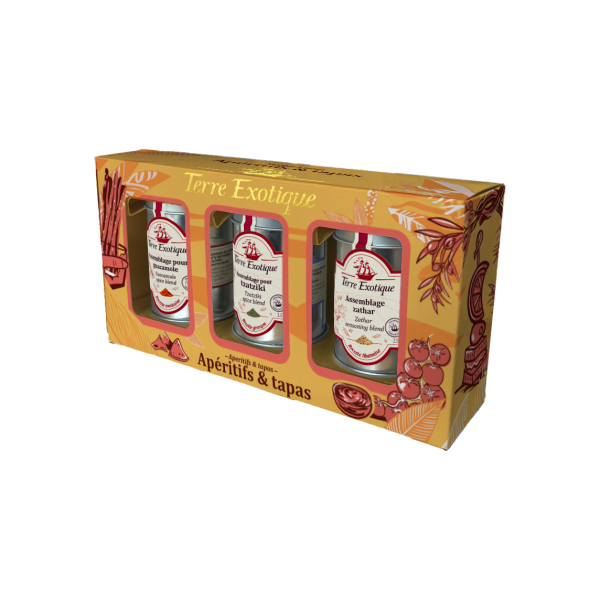 Esta caja de aperitivos y tapas Terre Exotique te llevará de viaje desde tu sofá durante tus próximos aperitivos de cena.