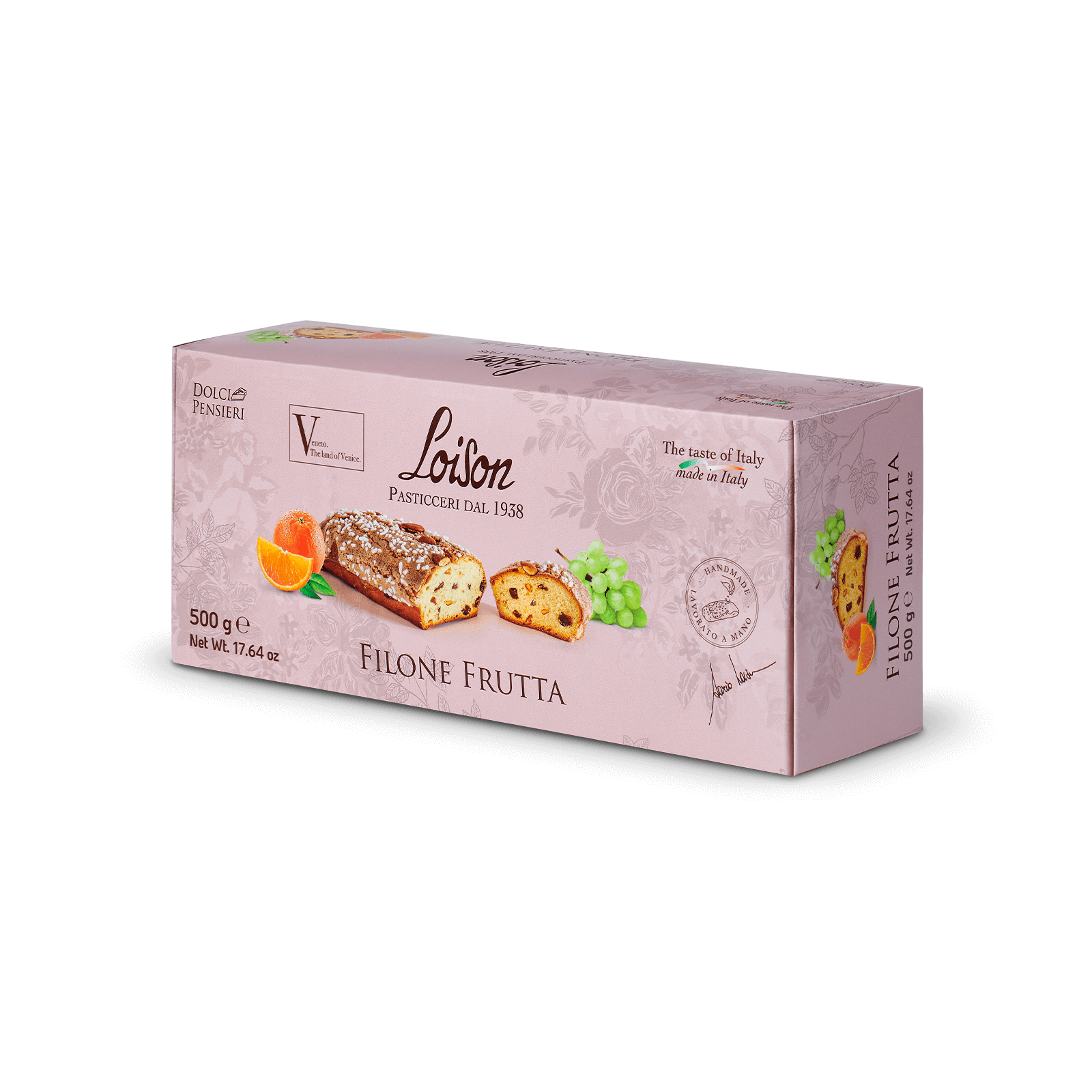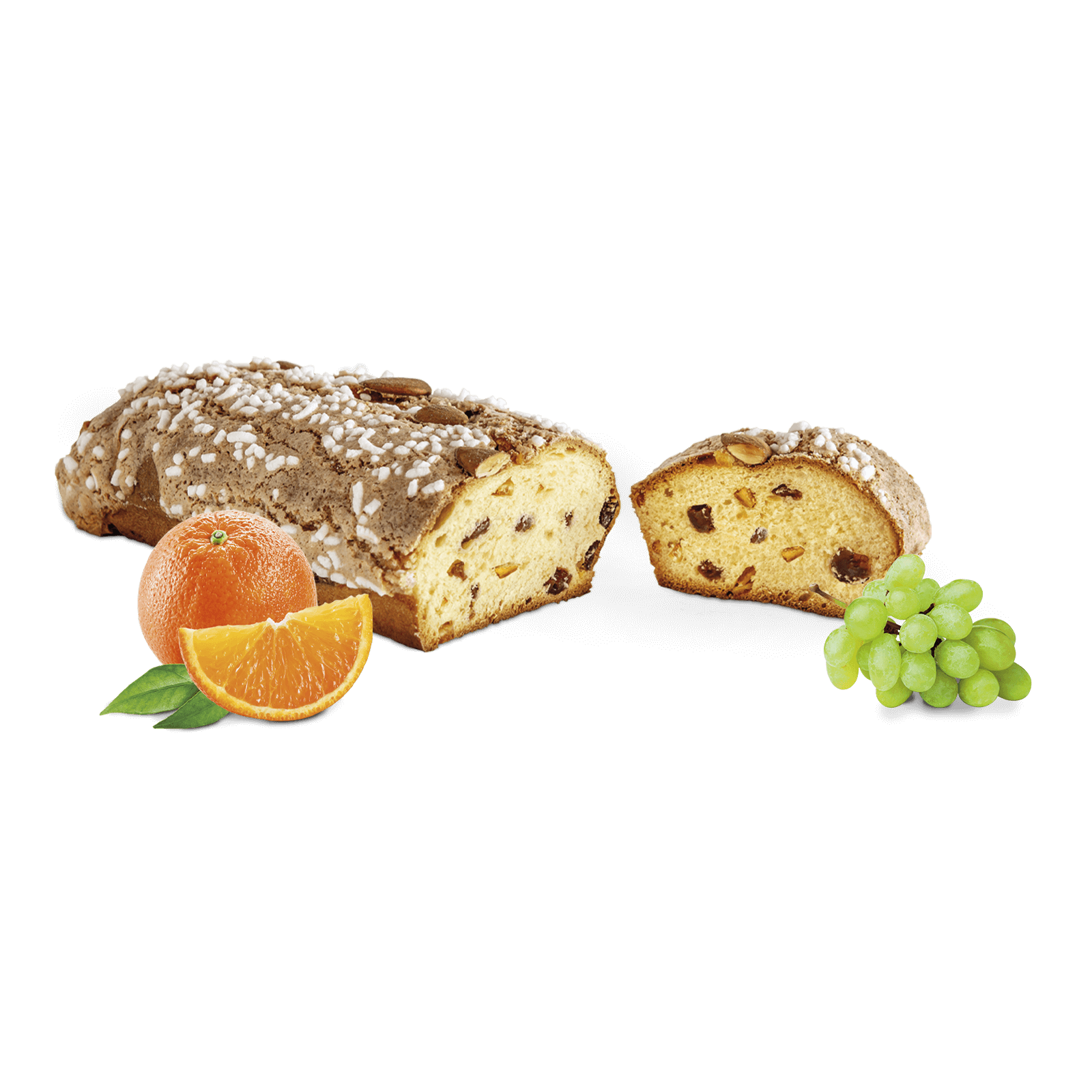 El Pan Dulce de Frutas es un producto artesanal con levadura natural gracias al uso de nuestra levadura madre. Dario Loison ha querido revivir esta antigua receta de su padre Alessandro, enriqueciéndola con una selección de ingredientes de primera calidad. La pasta, caracterizada por una buena alveolación, está adornada con pasas sultanas y deliciosas pieles de naranja sicilianas confitadas. La superficie está cubierta con un glaseado de almendras italiano «Tuono» desmenuzable, que le da al pan una textura y un sabor inolvidables.