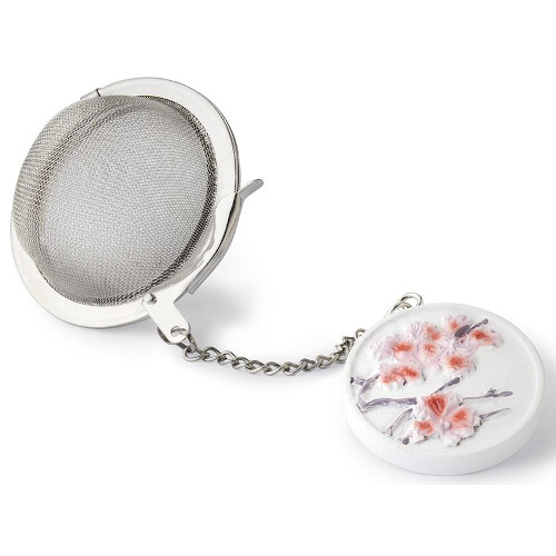 Filtro de bola con cadena y figurita, de acero inoxidable. Pintado a mano, en caja de regalo. 5cm diámetro.