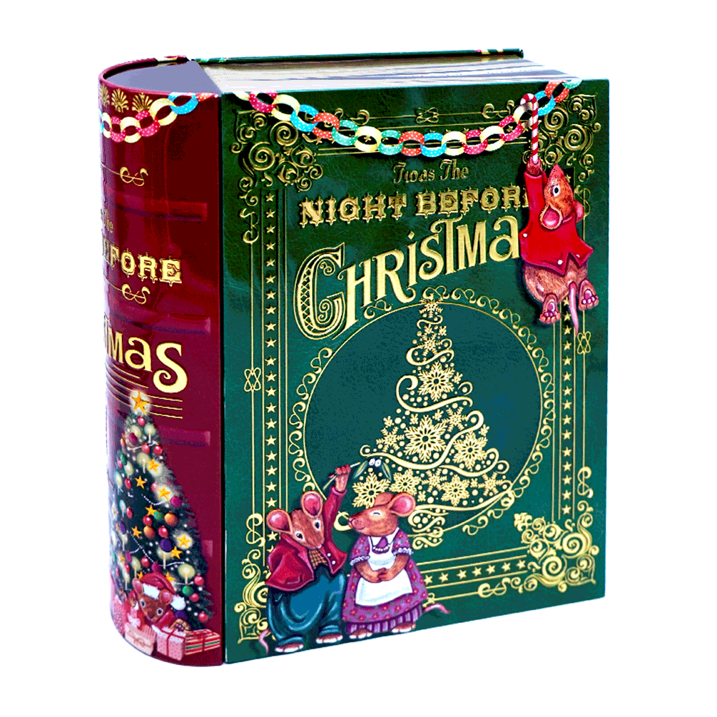 Perfecta para completar la decoración navideña en tu estantería con esta lata de brillantes colores y bonitas ilustraciones de ratoncitos.