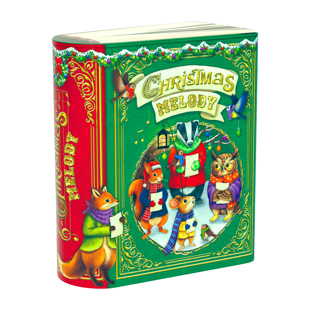Perfecta para completar la decoración navideña en tu estantería con esta lata de brillantes colores y bonitas ilustraciones de animalitos cantando villancicos.