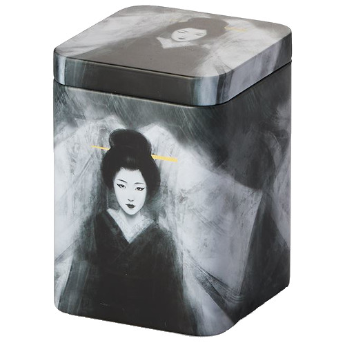 Lata cuadrada, con tapa gruesa, a presión, para conservar 100 gr. de té. 7,3cm largo. 7,3cm ancho. 10cm alto.