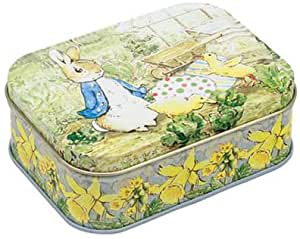 Esta lata metálica rectangular de Peter Rabbit es ideal para guardar los pequeños tesoros de tu bebé desde el nacimiento. Perfecta para almacenar botones, chupetes, accesorios y otros objetos pequeños, manteniéndolos organizados y protegidos.
