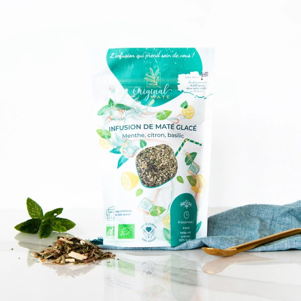 ¡Refréscate con una bebida 100% natural y sin azúcar durante el verano! Esta infusión de mate combinada con hierbabuena y limón se complementa con albahaca y hierbabuena. Juntos, te dejarán una sensación de frescor que permanece en la boca. Infusión para calmar la sed, sin amargor. ¡Ideal para este verano, cuando hace mucho calor o después de una gran comida! Preparación: – Infundir 3 cucharadas soperas por cada litro de agua caliente a 80° – Déjalo reposar a temperatura ambiente – Colóquelo en la nevera de 6 a 12 horas – Filtra, añade cubitos de hielo como desees, ¡disfruta!