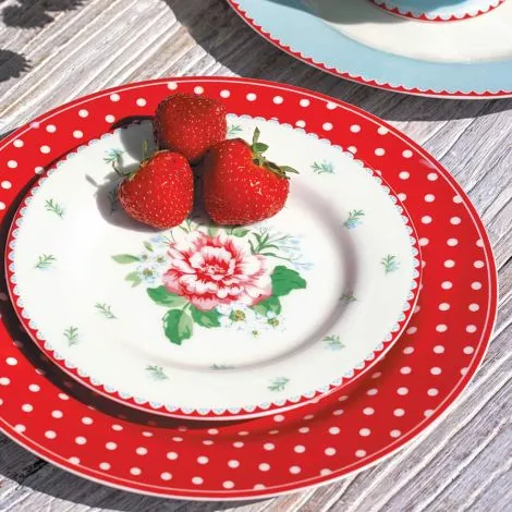 El plato rojo de lunares de Greengate ,aporta un toque alegre a cualquier mesa . Su vibrante color rojo y su divertido estampado de lunares llenan de color cada comida y son ideales para el desayuno, el almuerzo o la cena. El material de alta calidad garantiza estabilidad y durabilidad, mientras que su diseño lo convierte en un elemento decorativo que llama la atención. Como muchos productos de GreenGate, este plato combina funcionalidad con un diseño encantador. Los platos rojos Dotty son un elegante accesorio de cocina de GreenGate.