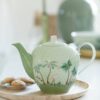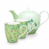 ¿Disfrutando de un desayuno temprano por la mañana? Con este gran juego de té alegrarás tu vajilla de inmediato. Este conjunto contiene dos tazas, que tienen un fondo verde y están decoradas con múltiples flores de colores. Además encontrará una tetera con un diseño tropical y un pico verde.