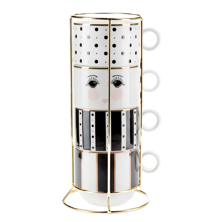 Set de 4 tazas en soporte para lucir en la cocina su inconfundible estilo nórdico de Miss Étoile.