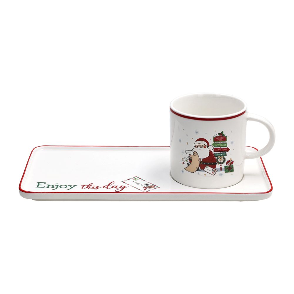 Juego de taza con platillo rectangular New Milk&C Let It Snow en porcelana