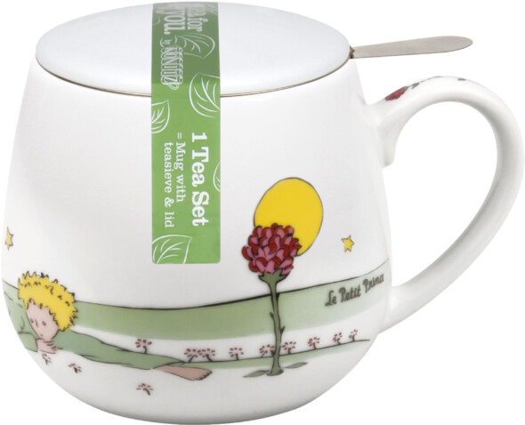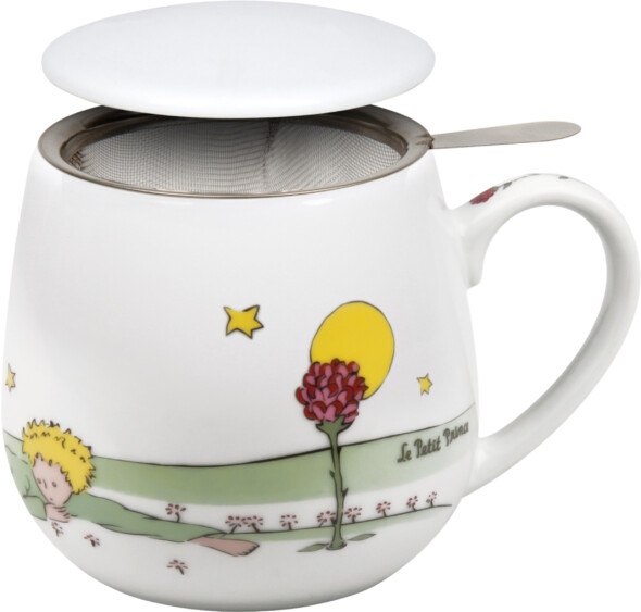 Esta adorable taza con filtro y tapa del mundo de El Principito muestra al entrañable personaje del libro infantil con sus dos mejores amigos. La encantadora ilustración invita a soñar a grandes y pequeños y seguro que les sacará una sonrisa a tus seres queridos como regalo.