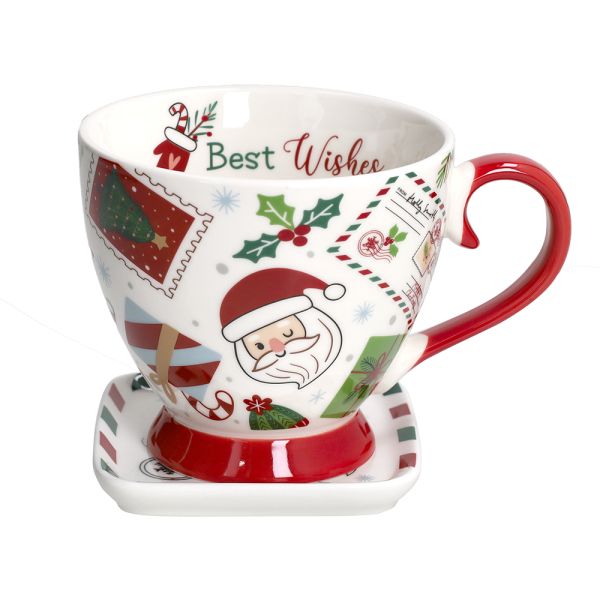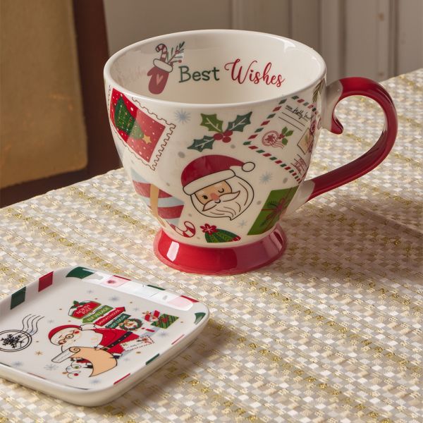 Juego de taza con platillo cuadrado New Milk&C Let It Snow Nueva porcelana
