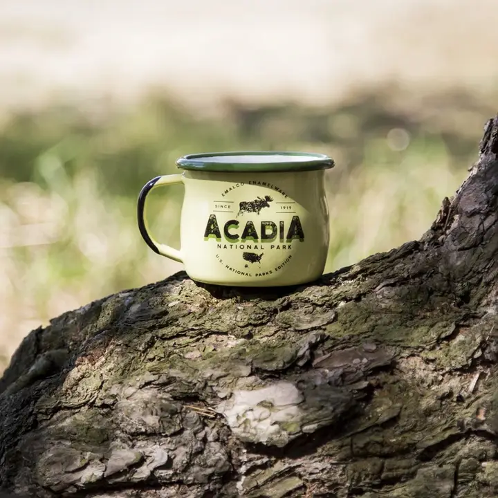 Dale una taza de café a los Parques Nacionales de los Estados Unidos ya su padre, John Muir! Los colores y formas elegidos para esta taza esmaltada le han dado su increíble aspecto vintage. La taza de café Acadia es una de las 5 disponibles en nuestra colección de Parques Nacionales de EE. UU. UU. Para viajes, para el hogar, para el trabajo. ¡Échales un vistazo a todos ellos! El esmalte es un material duro que puede sobrevivir mucho