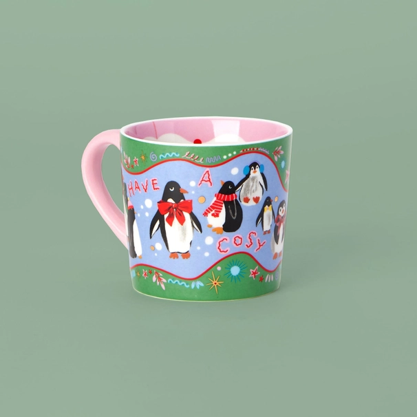 ¡Aporta un toque festivo a tu cocina con esta Taza de Navidad de Pingüinos Acogedores! Presenta nuestro encantador diseño de pingüinos y tiene un asa de color rosa pálido para añadir un poco de alegría. ¡Ninguna mañana de invierno está completa sin un sorbo de chocolate caliente o café en esta encantadora taza! Especificaciones del producto: * Ancho 9,5 cm y altura 8,5 cm. * Solo lavado a mano * Porcelana de hueso nueva de calidad premium