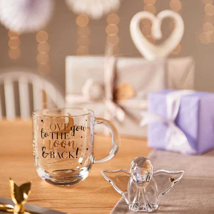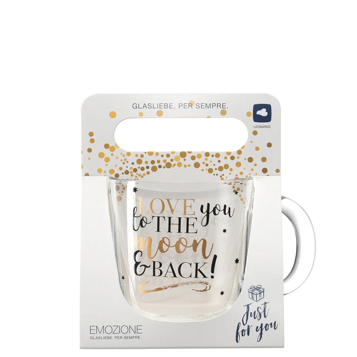Buscas el regalo perfecto para expresar tu amor? ¡Nuestra taza de vidrio con el emotivo mensaje «Te amo hasta la luna y más allá» es exactamente lo que necesitas! Esta acogedora taza no solo es bonita a la vista, sino que también es práctica para el uso diario. La superficie de vidrio transparente le da a la taza una elegancia atemporal, mientras que el mensaje amoroso captura tus sentimientos. Cada sorbo de esta taza se convierte en un momento tierno que refleja el amor entre ustedes dos. Ya sea para tu café de la mañana o para un relajante té por la noche, esta taza siempre te acompañará y te recordará tu conexión única. Demuestra tu amor de una manera especial: con nuestra taza de cristal EMOZIONE. ¡Cómpralo ahora y comparte tu amor en cada sorbo!
