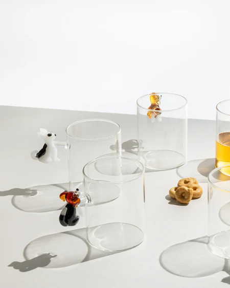 La Dogs Mug está disponible en varias variaciones, con un Golden Retriever, Bull Terrier, English Foxhound, Chihuahua, French Bulldog o Poodle. Cada diseño captura el carácter de la raza, convirtiendo la taza en un pequeño retrato en vidrio. Ya sea elegida individualmente o como parte de una colección, las piezas reflejan la capacidad de Ichendorf para transformar animales en objetos poéticos y funcionales.