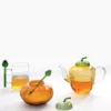 Tetera con tapa en forma de pimienta amarilla y verde. Hecho de vidrio de borosilicato es parte de la línea de verduras. Esta línea con el Sugar Bowl hará que su servicio de té sea original.