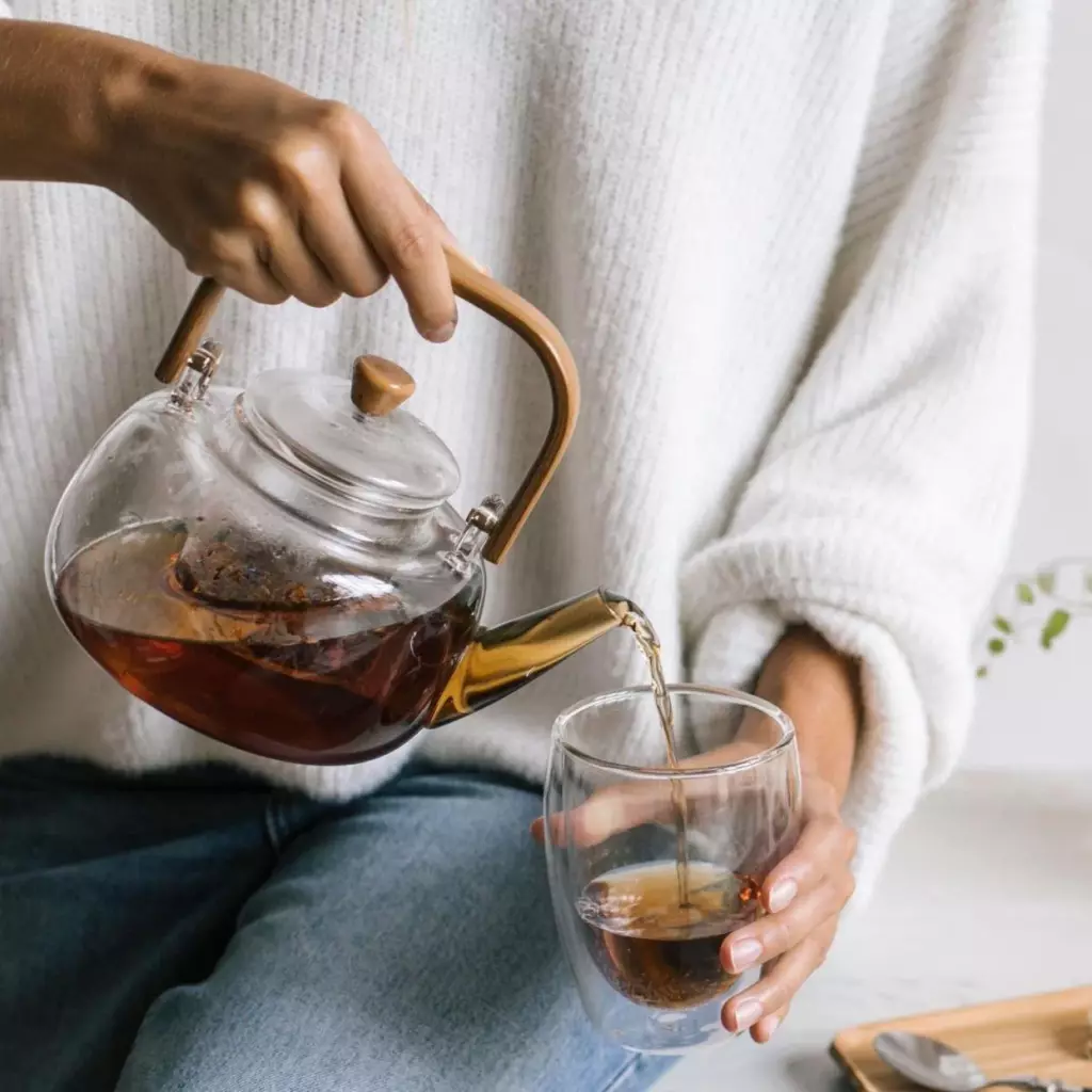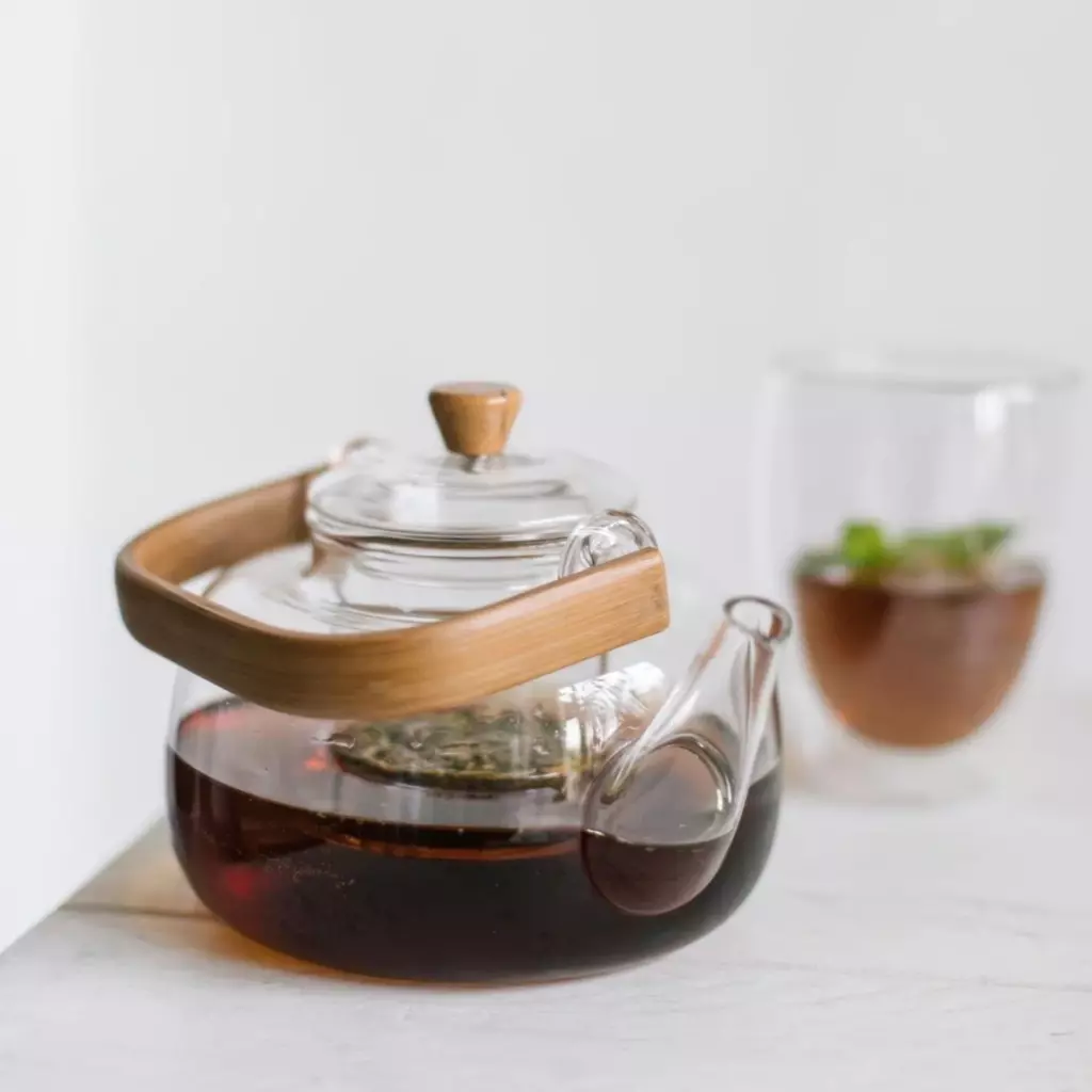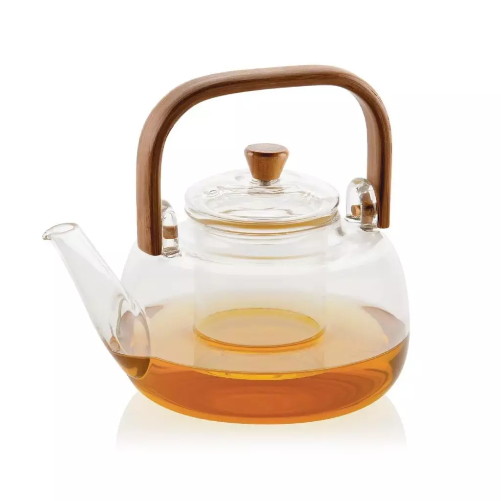 La tapa también está hecha de vidrio y tiene un pequeño tirador de madera de bambú. Tiene una capacidad de 1 litro, ideal para tomar el té en familia o servir té a invitados en un ambiente distendido y relajado.