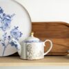 Esta pequeña tetera con el diseño Royal White forma parte de nuestro conjunto de porcelana Royal White. Royal White es porcelana refinada con sutiles rasgos pintados de azul y elementos dorados.