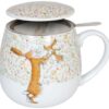 La liebre pequeña y la liebre grande se aman mucho. ¿Cuánto? A la luna… y de vuelta! Con estas palabras, la Gran Liebre Marrón Gira alrededor de su pequeño amigo. Los lindos personajes están rodeados de muchas flores de color pastel. Con la taza de porcelana de alta calidad, recibirá un colador y una tapa a juego, equipándolo perfectamente para su próxima ceremonia del té.